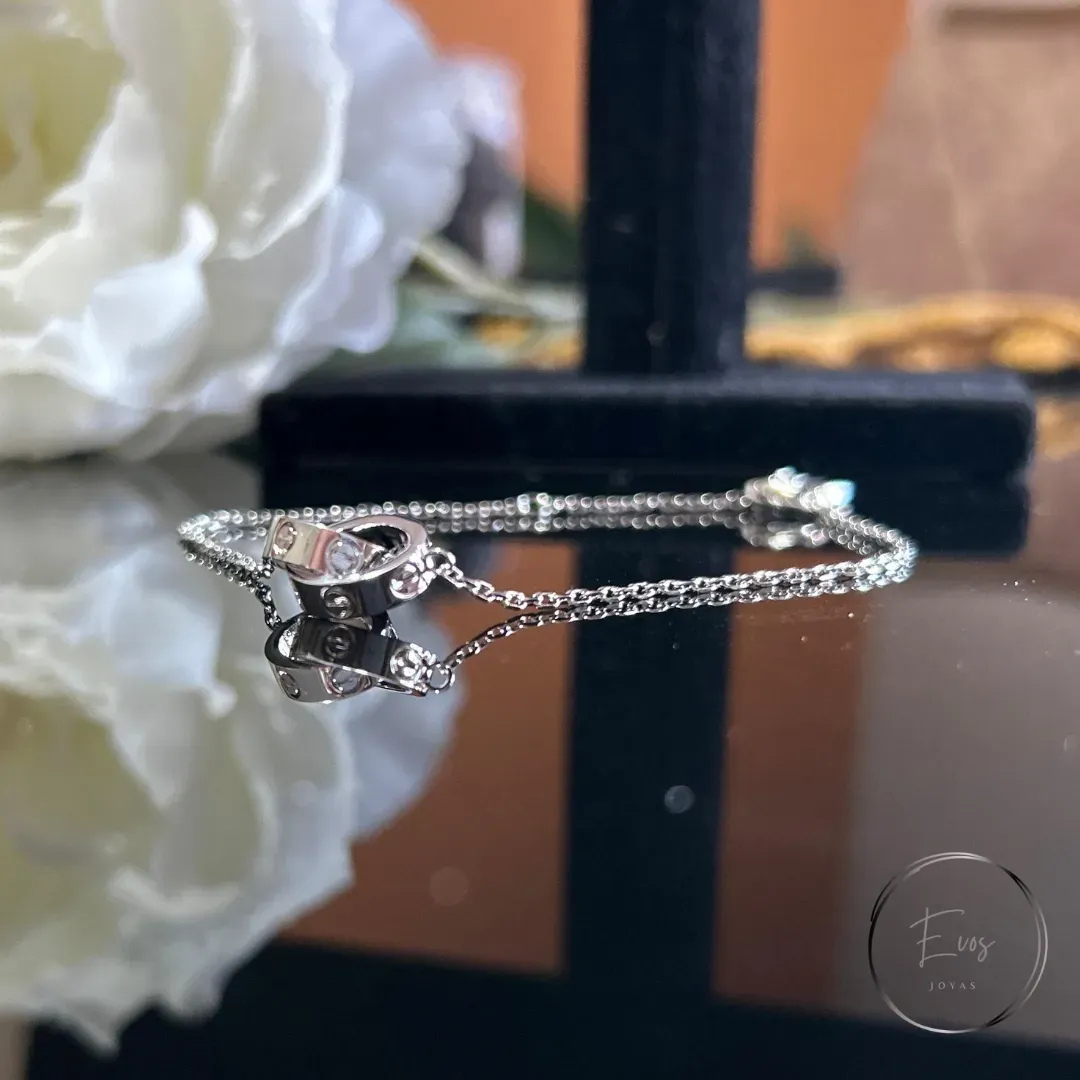 Un clásico atemporal que simboliza el amor eterno. Esta delicada pulsera en plata 925 presenta el icónico aro central con detalles de tornillos, inspirado en la reconocida colección LOVE. Su diseño minimalista y sofisticado la convierte en una joya perfecta para usar...